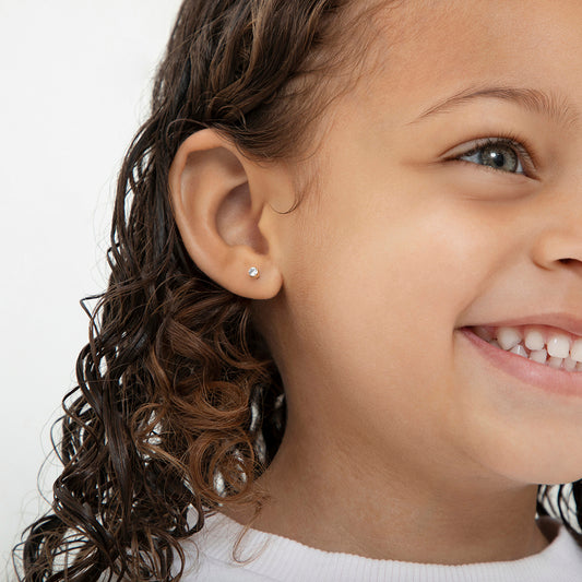 Aros solitario de circon cuadrado de plata 925 para bebes y niñas