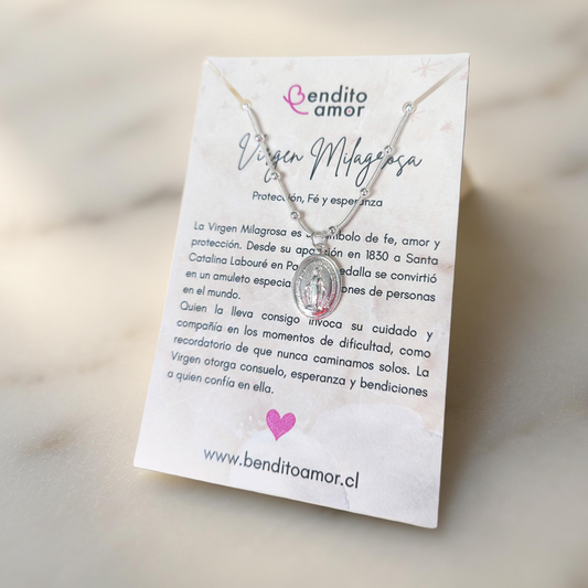 Cadena protectora cuarzo + virgen milagrosa 40 cm