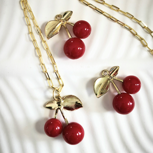 Collar oro y guindas/ cerezas 45 cm