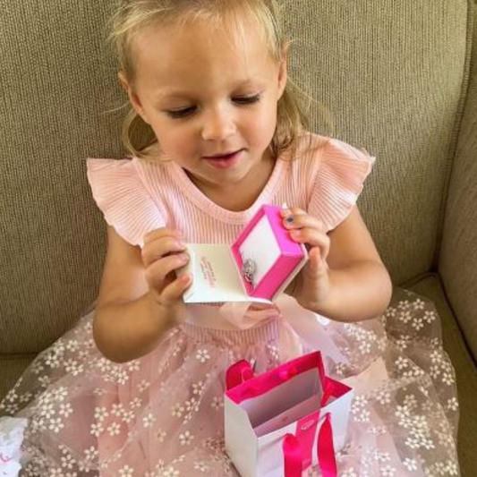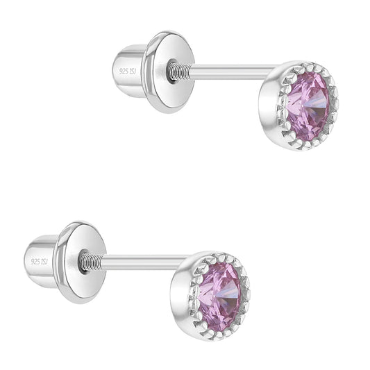 Aros redondos con un circon rosado engastados en bisel para bebes y niños