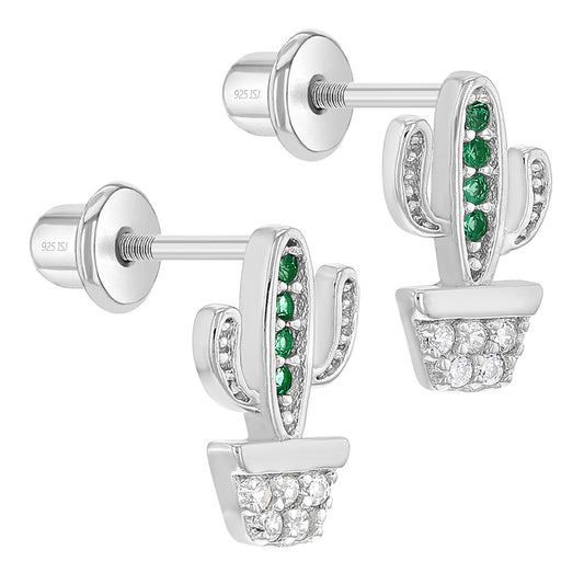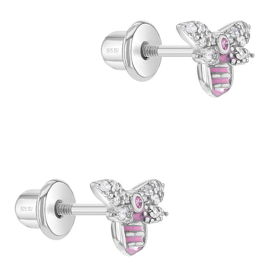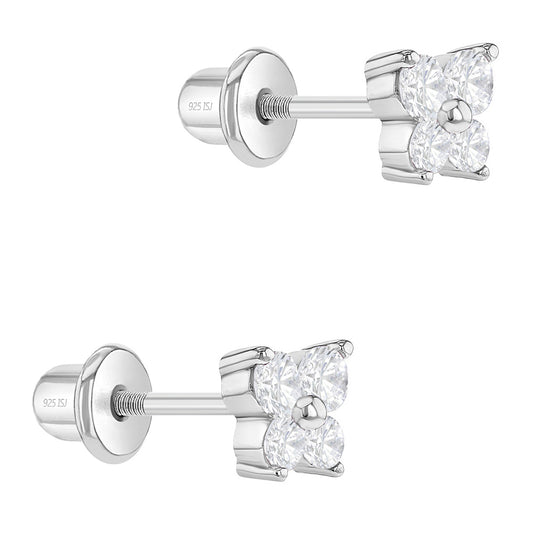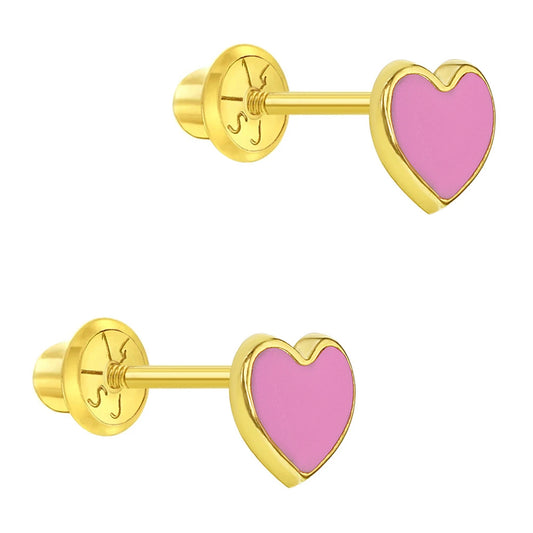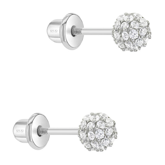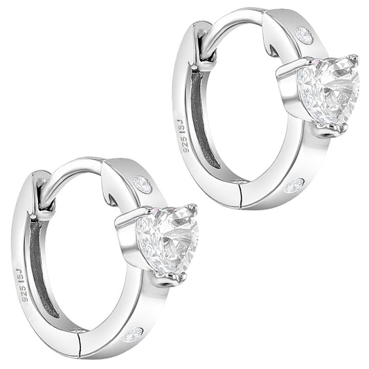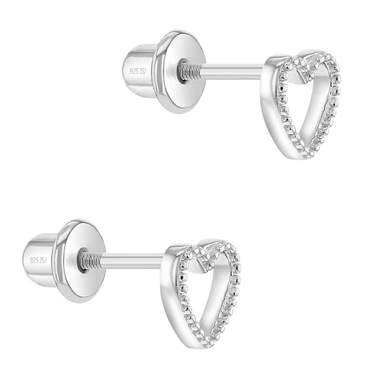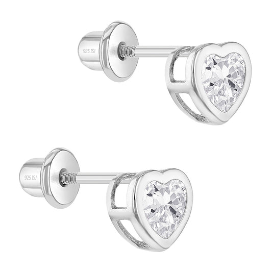 Aros de circón en forma de corazón en plata 925 con cierre de rosca para niñas