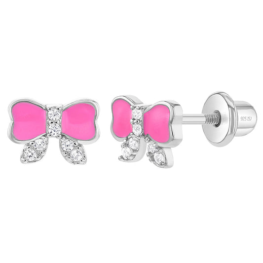 Aros lazo esmaltados de plata 925 con circonia para bebes y niñas
