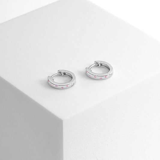 Argollas de plata 925 con puntos rosados de circones para niñas y adolescentes