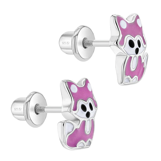 Aros con forma de buho de plata 925 y esmaltado rosa para niñas