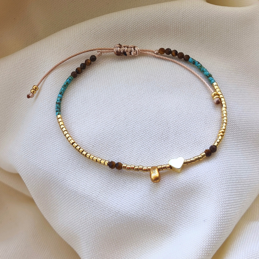 Pulsera de ámbar báltico con dije de corazón plata 925