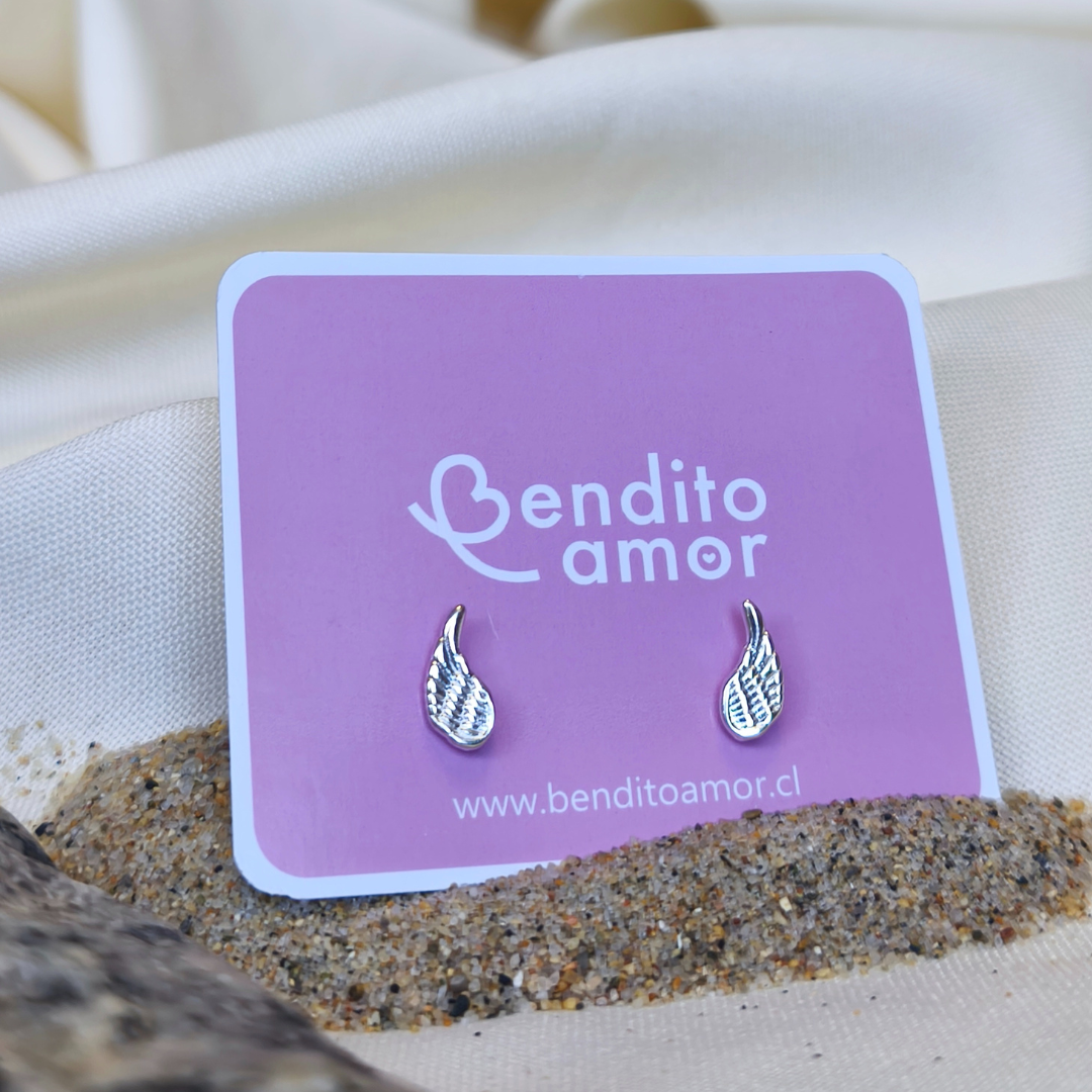 Aros de plata 925 con diseño de alas ángel de la guarda, livianos y brillantes.