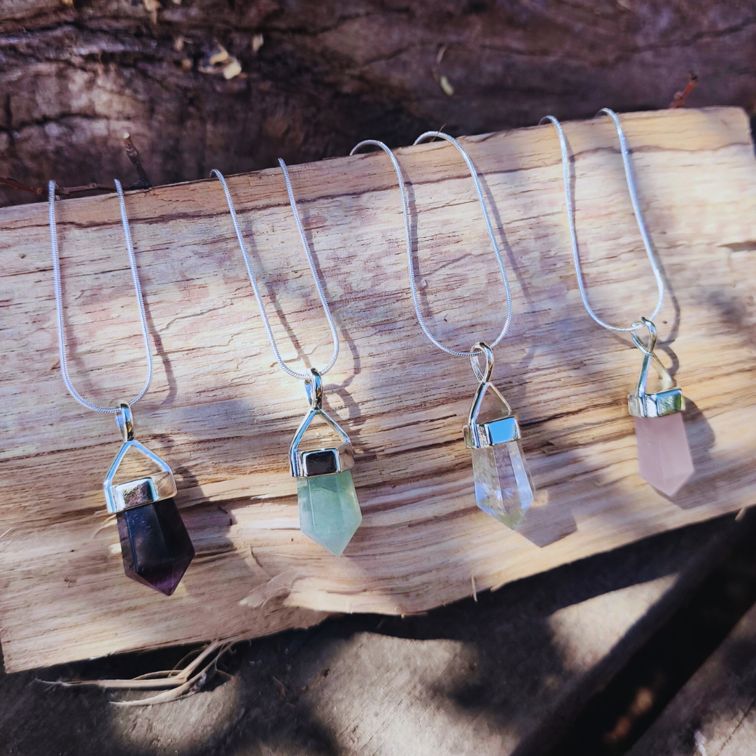 Cadena de Plata con Dije de Cuarzo y Piedras Preciosas — Elige la Energía que Te Acompañará